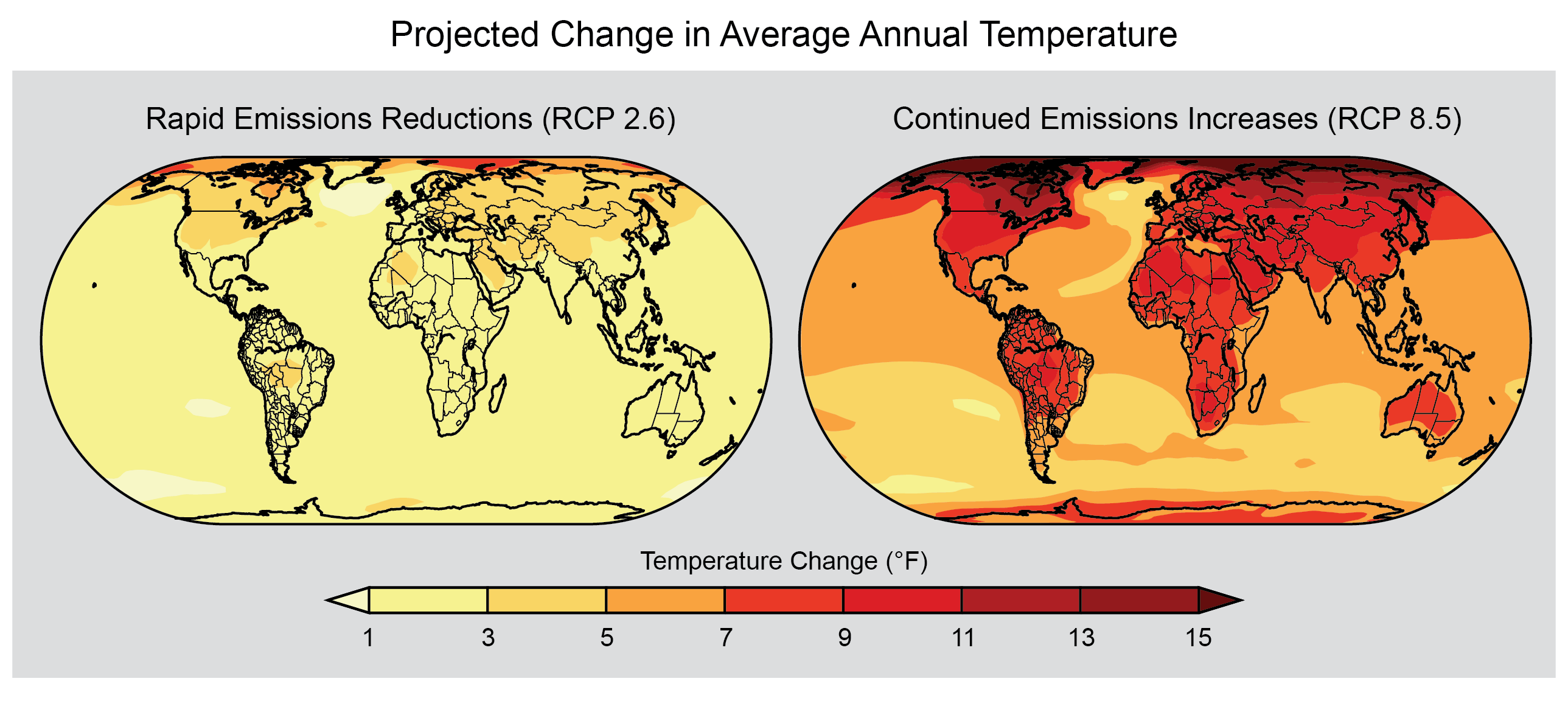 The models used to simulate our future climate use different greenhouse gas emissions scenarios to reveal a range of possible future climates. If we emit a particular level of greenhouse gases in the coming decades, the projection best matching these emissions provides us a glimpse of how different our climate is likely to be.