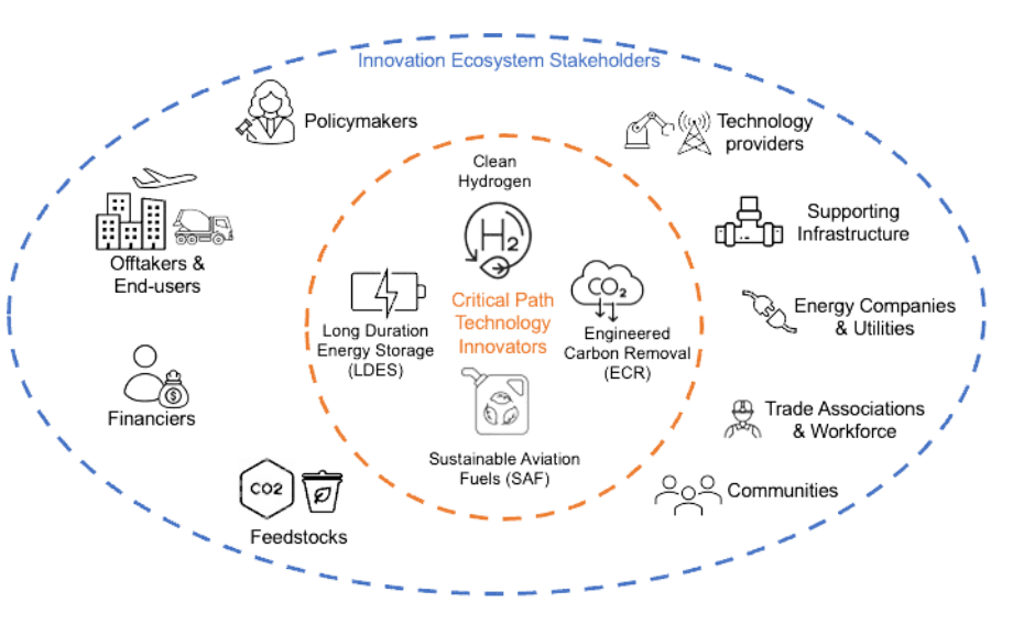 Our working groups convene the broad ecosystem, meaning that each working group includes climate tech startups, supporting infrastructure, current/prospective buyers, trade associations, institutional investors and lenders.